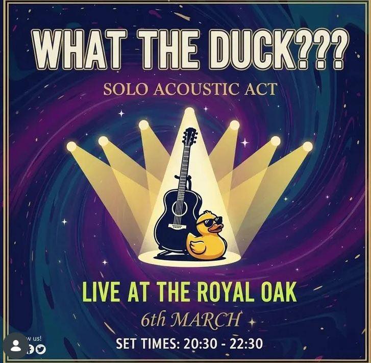 Live music this Friday at The Royal Oak 🎶 Join us from 8:30pm for What The Duck — a solo acoustic set packed with rock, pop and indie favourites. It’s the perfect way to ease into the weekend. Fires on, pints pouring, and plenty of great tunes to settle into. See you tonight for a good night of music and a relaxed pub atmosphere 🍻🎸