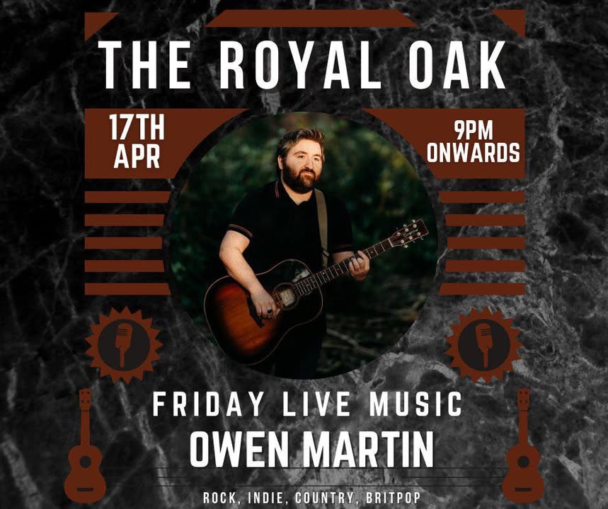 Live music tonight with Owen Martin 🎶 He’s on from 8:30pm, so if you’re out and about, drop in for a drink and a bit of live music. Easy evening, good tunes, and the usual Royal Oak atmosphere. 🍻🎸